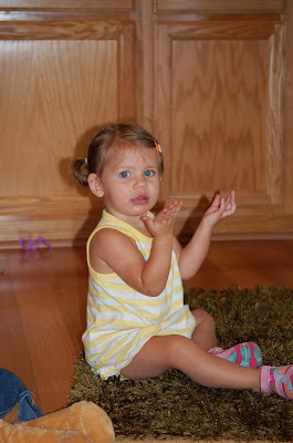 So she was a flower for Halloween. The selfish in me wanted her to be as baby as possible for one more year! But I should have known better! My instincts told me she would hate the hat and she did! But she did wear it long enough to take some pictures and for trick-or treating at two houses!! I just couldn't resist the waddle and the big fluffy feet! SO fun!Oh this lady bug smells funny! I tried to tell her that the lady bug is supposed to smell her not the other way around!